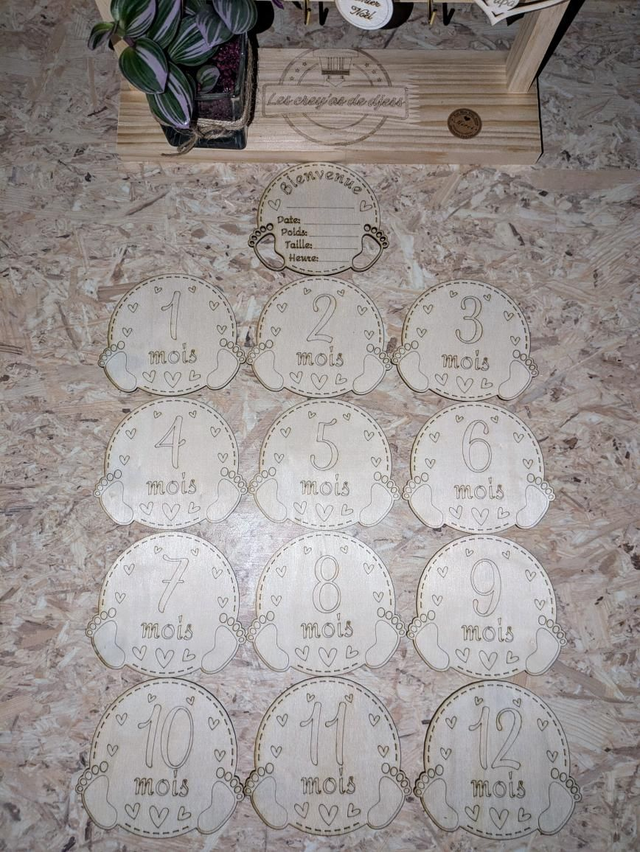Lot de cartes étapes des 12 premiers mois de bébé avec sa carte de présentation personnalisable.